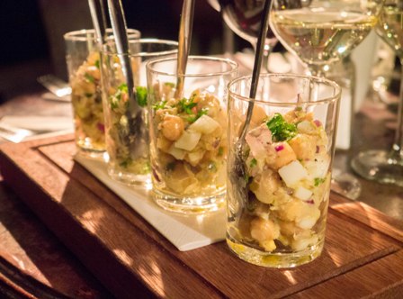 W trakcie wieczoru testujemy degustacyjne porcje poszczególnych przekąsek z specjalnie dobranym do nich portugalskim winem z wineonline.pl Tak też jest skonstruowana karta, do każdej przekąski polecany jest kieliszek odpowiedniego wina.